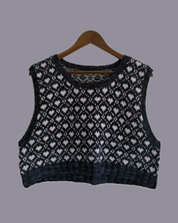 The level of the Heartcore Slipover is advanced (but only due to some of the stranded colorwork being worked flat), and the pattern contains colorwork charts as well as written instructions.