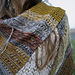 This is an asymmetric triangle shawl that is worked in garter stitch from one point and to the opposite edge. Increases are made in the beginning of every right-side row. The long edges are decorated with columns of eyelets and the yarn ends from changing the colours are left to hang on the right side of the knitted fabric. The yarn changes are not predetermined, allowing room for your creativity, and thus being suitable for all lengths of scraps.