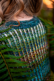 - Sleeve stitches are picked up around the armholes and worked in the round in two color brioche, gently shaped for a great fit and finished with two strand garter cuffs