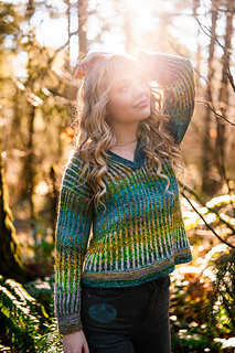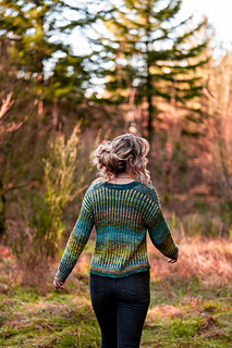 Hearthside Pullover is designed for fingering weight yarn held double. Experiment with using different colors for each strand to blend your leftover yarn.