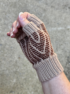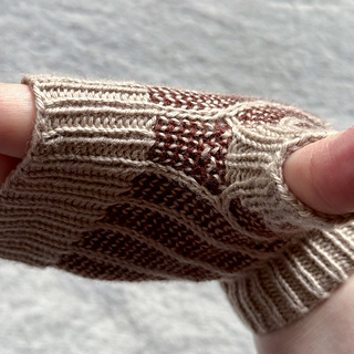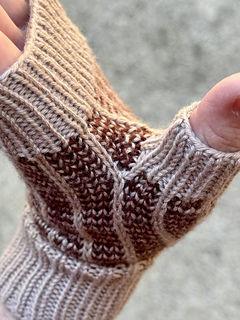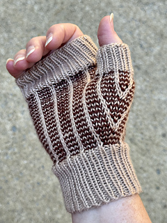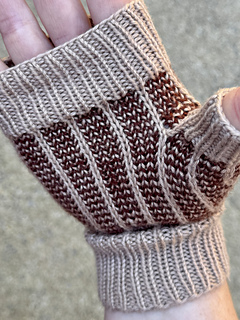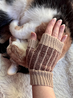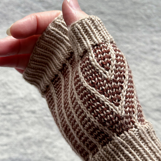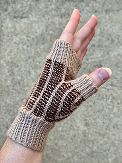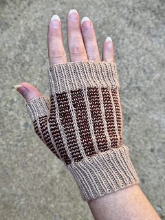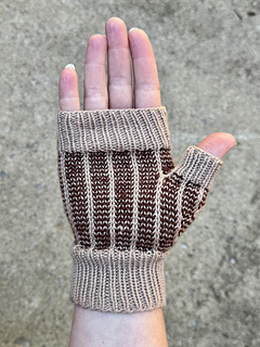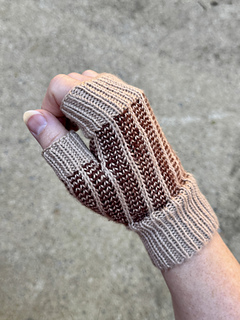 Knitted from the bottom up by starting at the wrist cuff using 1x1 rib, then stockinette with slip stitches for the hand and thumb gusset portion, then 1x1 rib again for the top cuff, then finishing off with the thumb. The thumb increases and gussets are designed to integrate perfectly with the vertical slip stitch stripe details. The length of the wrist cuff may be easily modified to be shorter or longer according to your preference.