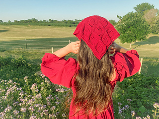 This classy lace bandana is knit in a triangular shape, worked bottom up, and perfect for confident beginners ready to try something a little more special. It’s full of sweet heart motifs, easy to knit, and perfect for your cottage-core moments. This is the kind of project that grows quickly, teaches you new skills, and rewards you with something truly beautiful to wear or gift.