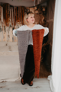 Heartlette is a captivating long triangular scarf that showcases a delightful array of stitch patterns. Crafted with love, this versatile accessory features a harmonious blend of textures, from delicate lacework to cozy garter stitches. Perfect for any season, the Heartlette adds a touch of whimsy and warmth to your ensemble, making it a must-have addition to your wardrobe. Wrap yourself in creativity and charm with this stunning scarf!