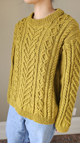 As part of the String of Hearts cable work series, this pullover revisits traditional cable knitting through a modern lens. The design is worked top-down and features semi-set-in shoulders at the back, offering structure while maintaining a comfortable, wearable fit. An optional double-folded neckband allows for a polished finish and added warmth. This design is intended to be gender-neutral, with proportions and styling suitable for a wide range of body types and personal aesthetics.
