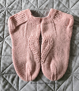 Sukka on perus tennarisukka, johon neulotaan teräosan päälle määrätynlaisella silmukkaparilla sydänkuvio.