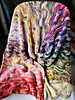 Grab your mini skeins or scraps of sock weight yarn to make this fun and relaxing shawl/wrap. Easy knit rows are broken up by interesting waves of elongated stitch rows, creating a beautiful fabric that suggests movement and lace.