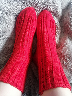 The instructions are written for a sock size M (EU 37-40), but I have added suggestions for where to reduce or add stitches to fit different width of feet.