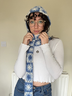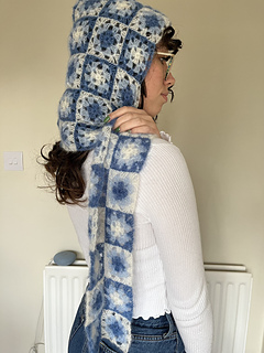 The Heidi Hooded Scarf is a wonderful, lightweight accessory that will add a touch of style and warmth to your crochet collection. This beginner friendly pattern consisting of soft, fluffy granny squares is crafted with mohair yarn resulting in a cozy hooded scarf that’s ideal for the cooler months.