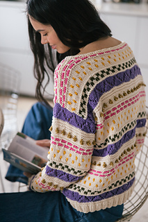 The Heinäkuu Sweater is an effortless choice when you want to dress in a way that is both relaxed and polished. Designed by Sisko Sälpäkivi using Aura yarn, the sweater features elegant stripes worked in different stitch patterns, creating a lively texture and highlighting the garment’s refined details. This light and comfortable sweater is perfect for everyday wear as well as relaxed summer moments, and its timeless silhouette makes it a reliable wardrobe piece for many kinds of outfits.