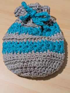I used two colors of acrylic yarn, approximately 25-30 yards per color, with a 5.5mm (I) hook.