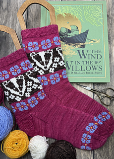 The Hello Flower socks were designed as a complementary accessory for the Hello Flower Sweater pattern. My parents always used pet names for us: duck, sparrow, sunshine, sunflower, love. While working on the yoke of the Hello Flower Sweater, as soon as I saw the little badger face start to emerge from the flowers, I thought, ‘well, hello there flower.’