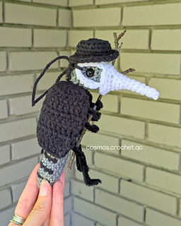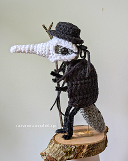 Armed with his tiny beak mask and a vial of questionable “medicine,” he’s determined to cure every illness (real or imagined). This little critter is perfect for those who love spooky-cute amigurumi with a touch of dark humor!