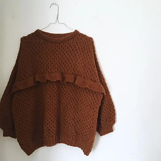 Henri est un grand pull loose très féminin avec l’association de son point dentelle et du volant.