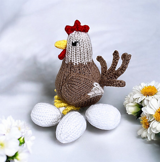 A whimsical knitting pattern featuring Henrietta the hen and her little eggs. Full of character and country-chic charm, she is perfect for playful Easter decorating, a quirky handmade gift, or a delightful keepsake for chicken lovers and knitters alike.