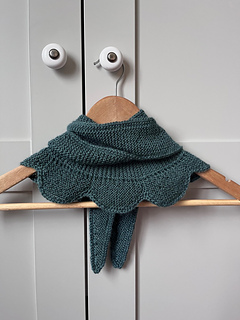 The piece is worked in garter stitch back and forth with edge stitches. The “yoke” is shaped with short rows.