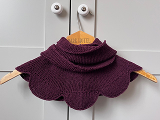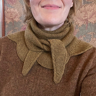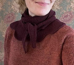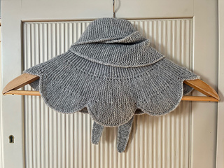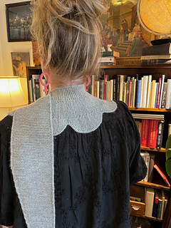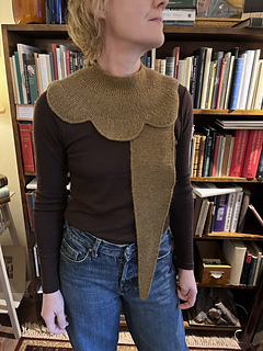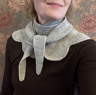 The piece is worked in garter stitch back and forth with edge stitches. The “yoke” is shaped with short rows.