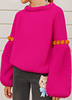 Knitted pullover for children with balloon sleeves with bubbles. It is knitted in SANDNES GARN Alpakka Ull & Børstet Alpakka. The jumper is knitted top-down with raglan sleeves, which makes the work grow naturally over shoulders and chest, and requires minimal assembly.