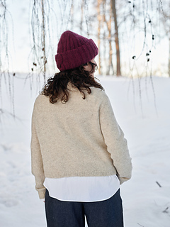 Herbari is an oversized, cabled sweater knit using the contiguous set-in sleeve method, one of the most flattering constructions as it enhances the shoulders. It is knit top-down and seamlessly in the round. The sweater features three botanically inspired embroidered flowers — the icing on the cake for this delicate and soft piece.