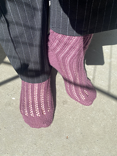 Imagine these lace socks on a lovely spring day, where it’s just a bit too cold to wear your sandals barefoot. But with these socks inside you get to show off both your fabulous handknit socks and your new sandals!