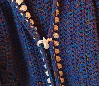 Body designed to be all one color, of course this is optional. Pattern includes details for all 3 versions in 5 sizes: garment chest from 42” - 58”. It calls for wt. 4 yarn, using about 36-44 oz, also 1-3 toggles about 1.5” long, optional.