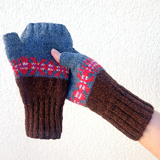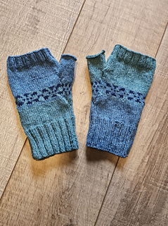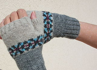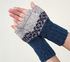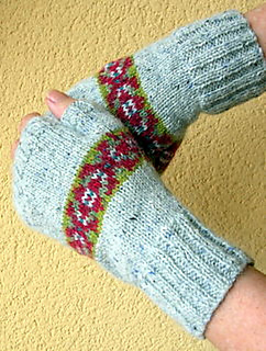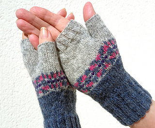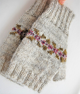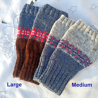 Warm winter mitts knitted in gorgeous yarns, with a thumb gusset for comfort featuring a small peerie pattern in the centre, with DK and 4ply yarn.