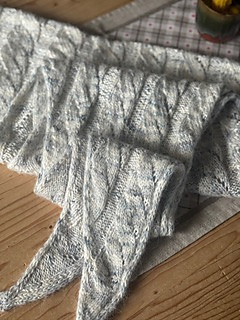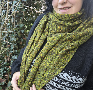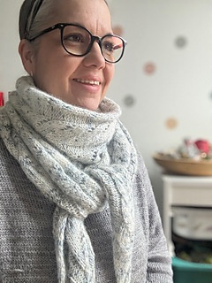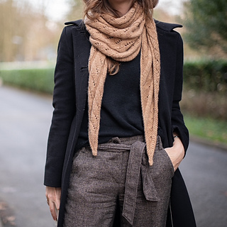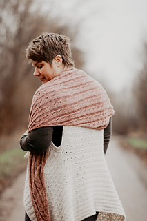 Der Hida Shawl ist ein schlichter und doch eleganter Shawl einem schönen Lacemuster, welches optisch wie ein Zopfmuster wirkt. Der Shawl wird von Spitze zu Spitz in Reihen gestrickt und durch Zu- und Abnahmen an der Seite in Form gebracht.