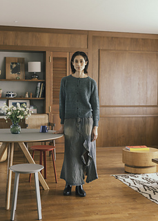 This cardigan is worked top-down from the neck. After casting on for the neckline, short rows are worked to raise the back neck while increasing for the raglan, then the front neckline is shaped. The yoke is worked flat to the underarm, where the body and sleeves are separated. The sleeves are worked in the round. Finally, stitches for the front band and collar are picked up and worked.