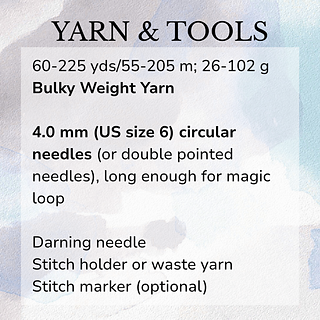 4.0 mm (US size 6) circular needles (or double pointed needles), long enough for magic loop
