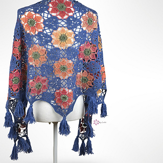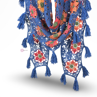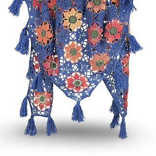 If you use the same yarn and hook as the pattern suggests, the shawl will measure approx. 180 x 105 x 105cm. If you want a bigger or smaller shawl you can add or remove rows of flower hexagons.