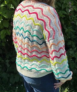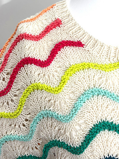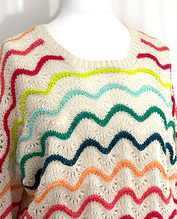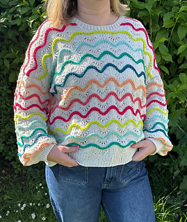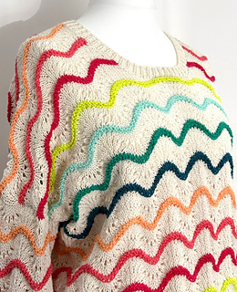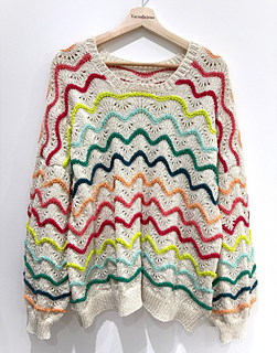 ‘High Tide’ is a top down dropped shoulder sweater. Made with the colourful and fun Scheepjes Softfun colour pack of mini 20g balls.