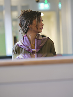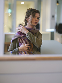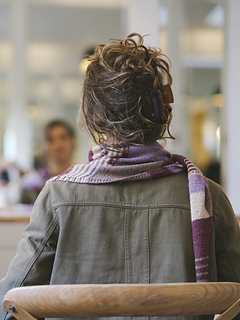 Highline is a mini triangular shawl, knitted tip to tip. Worked in four tones of Nature’s Luxury On Stage Long Métrage, it’s a relaxing yet engaging project where you can enjoy the interplay of colour throughout. The design features a sequence of sections — solid colour, intarsia blocks, stripes, and slip-stitch intarsia bands — that come together to form an intriguing patchwork effect.