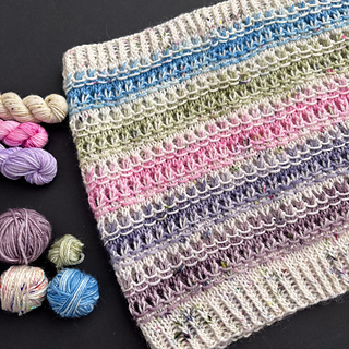 This is a great stash busting project, or perfect for using beautiful mini skeins. If you weave in your ends carefully, the cowl also looks good worn inside out. The pattern has written instruction.