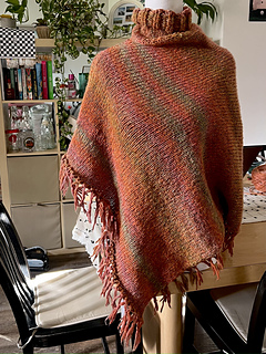 Featuring a soft ribbed turtleneck for that just-right touch of practicality and style, the poncho body is worked flat and seamed, while the neckline is picked up and shaped with short rows before being joined in the round.