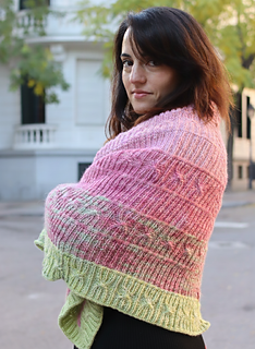 Este proyecto se teje en una sola pieza y en filas de ida y vuelta, alternando puntos del derecho y del revés. Los aumentos están dispuestos de manera que crean un triángulo, empezando así con unos pocos puntos y terminando con el número máximo de puntos.