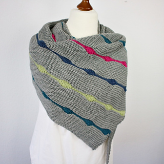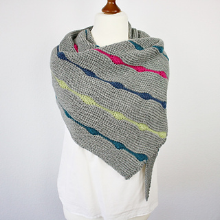 Color pops that dance across the fabric, a calm and rhythmic base texture, and a shape that drapes beautifully — Hip Hop is a gently asymmetrical triangular shawl created through simple increases and decreases along the edges. The colorful stripes are formed with short rows, giving the fabric playful movement and letting leftovers shine in the best way.