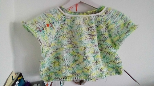 Le corps est travaillé en jersey, ce qui met parfaitement en valeur les nuances du fil fantaisie.