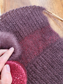 Schulterstreifen in glatt rechts, versetzt mit Paillettengarn,