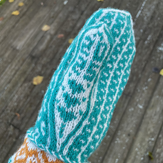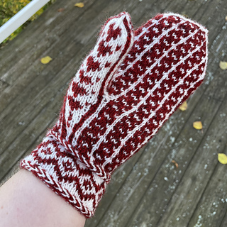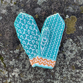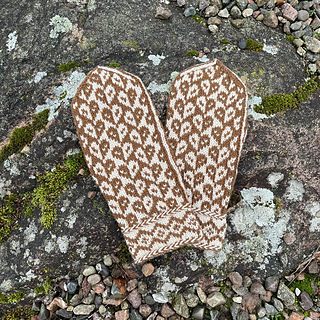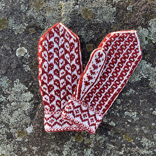 The mittens on the photos are knitted in Rauma Finull PT och Hillesvåg Vilje. Less than 50 gram used in each colour.