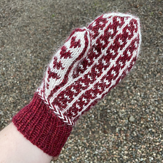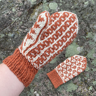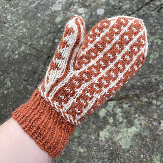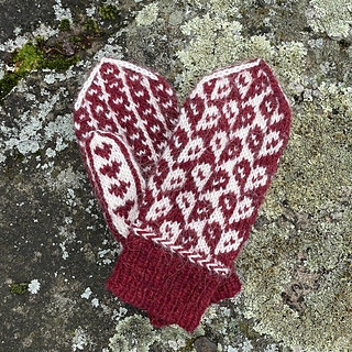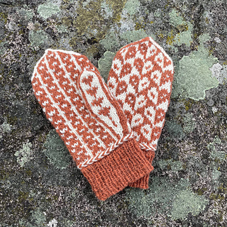 The mittens on the photos are knitted in Istex Lettlopi and Järbo Svensk ull 3 tr. Less than 50 gram used in each colour.