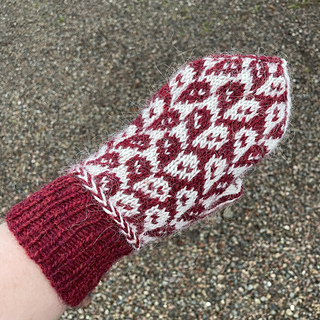 This is a classic mitten. At first you see a lot of vings, but then you realize it is a lot of hearts. A true heart’s delight.