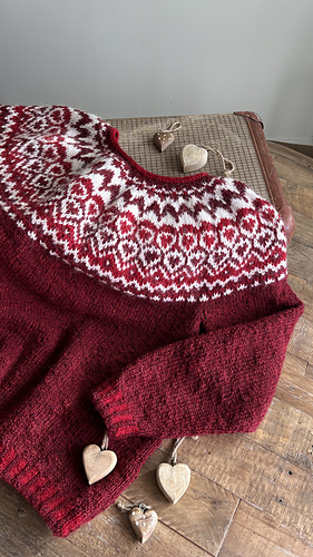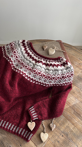 Hjerter av ull er en varm og lun genser strikket i Varde fra Hillesvåg.