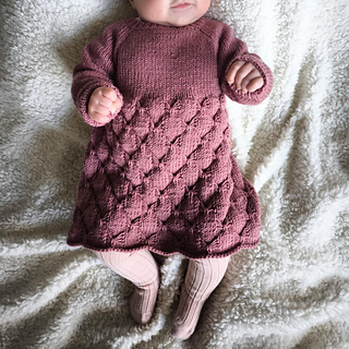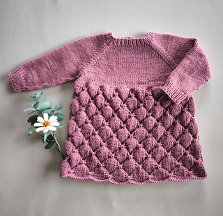 En søt kjole som strikkes ovenfra og ned med raglanøkninger
