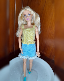 This pattern is designed to fit a Mattel Barbie doll with modern standard body or any similar fashion doll.