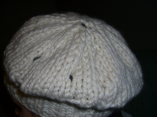A slouchy beret-style hat that knits up very quickly (2-3 hours max) and uses just one ball of yarn. The hat is worked straight as it’s hard to find circulars with a small enough cord for the brim in needle sizes 13 and 15. Gauge is not essential as the hat is slouchy and the yarn is forgiving.