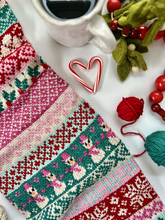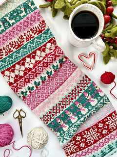 This pattern is worked in the round as a tube, from side to side. Beginning with a provisional cast on, the stranded colorwork is then knit to desired finished circumference. Then the two ends are grafted together for a seamless infinity cowl, with or without a twist.