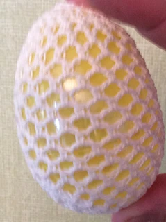 Egg cover worked over a plastic egg purchased at Jo-Ann’s. Pattern will fit any egg which is 3.5 inches in height by 7 inches in circumference. Easy to follow pattern. Complete this project in a few hours for instant gratification.