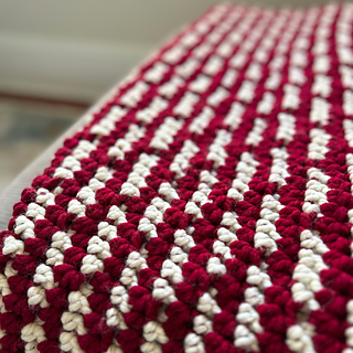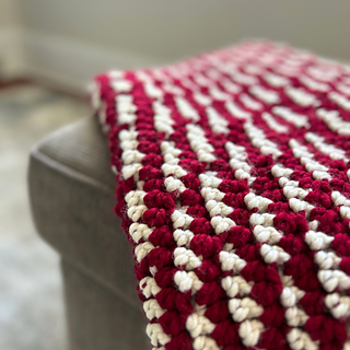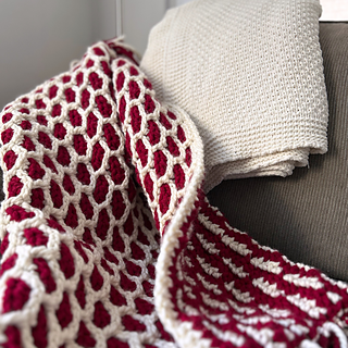 The Holiday Honeycomb crochet throw blanket features a fun honeycomb shape and festive colours that will be a treasured part of your holiday decor. This blanket works up quickly and makes a great gift. This crochet project has a simple 4 row repeat. Watch the texture build right off your hook.