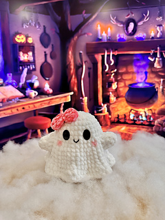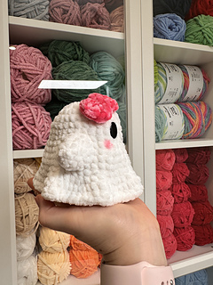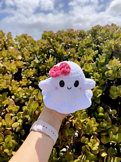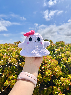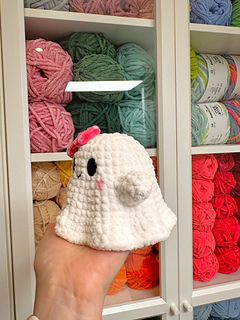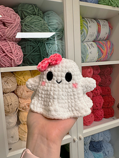 - Yarn colours: White (Ghost), Pink(bow), and Black(mouth).