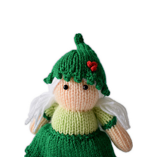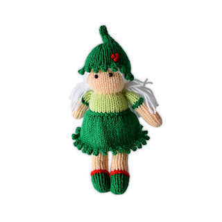 Holly is a little Christmas elf. Their hat and skirt have a picot trim to mimic the holly leaf and are decorated with embroidered holly berries.