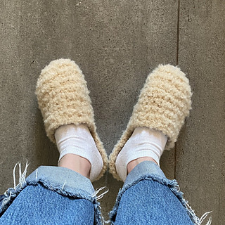 MATERIAL - any 5-(Bulky) Chunky weight boucle yarn, 5.0 and 2.0 mm crochet hook, rubber soles